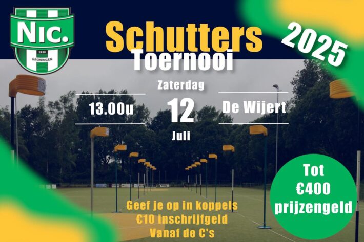Ook dit jaar zal er weer een schutterstoernooi plaatsvinden bij Nic.! Op zaterdag 12 juli is het zover. Je kunt vanaf de C-jeugd al meedoen. Dus zoek je favoriete schotmaatje uit en wie weet ga jij wel met een mooie geldprijs naar huis! Inloop van het toernooi is 12:30 uur, start van het toernooi zal 13:00 uur zijn.