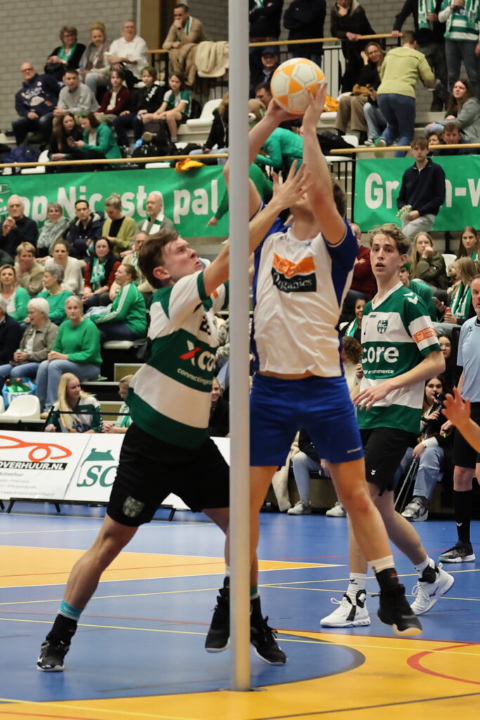 Nic. zou de voorsprong hierna niet meer uit handen geven. Yvo de Vries – hij scoorde in totaal maar liefst acht keer – zette de stand middels een benutte strafworp en een afstandsschot op 21 – 17, maar Nic. reageerde wederom sterk dankzij een mooi afstandsschot vanuit de draai van Rob Pettinga: 22 – 17. De doelpuntenmaker kreeg niet veel later, met nog zo’n zes minuten te spelen, de in totaal derde gele kaart van de avond te zien van scheidsrechter Talstra na een overtreding bij het uitverdedigen. Marit Bos gooide met nog drieënhalve minuut op de klok het achttiende en tevens laatste doelpunt van Wit-Blauw door de korf. Nic. wist hierna nog eenmaal de korf te vinden: Demi Wetsema zorgde voor de 23 – 18. Nic. mocht nog éénmaal aanvallen na een fraaie verdedigende actie van Eelke Woudstra, maar wist in die aanval geen goal meer te maken.