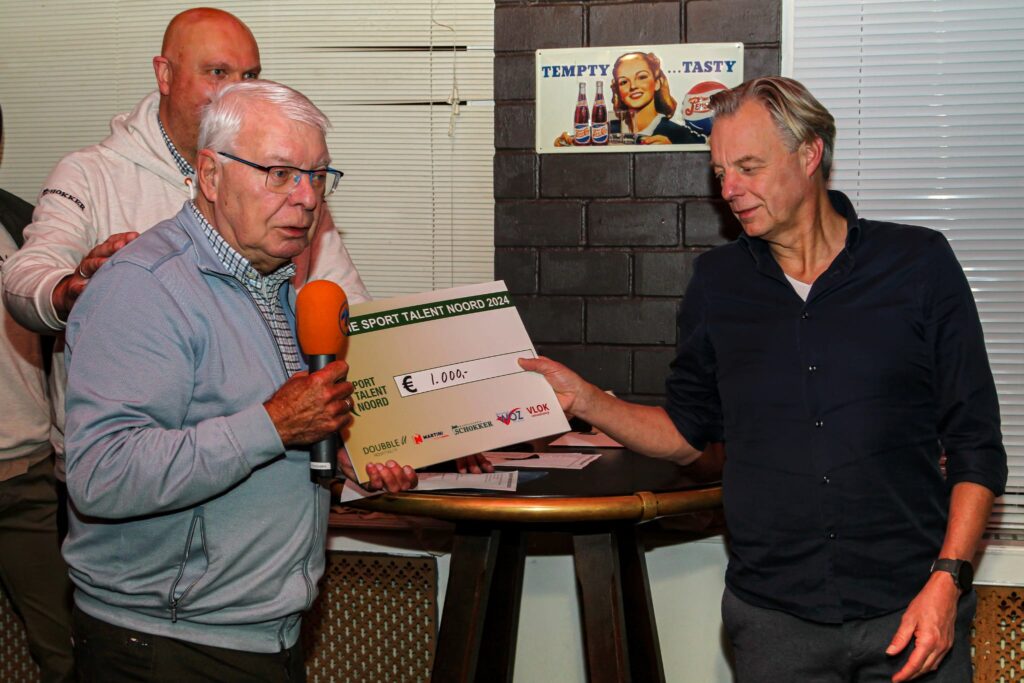 Het organiseren van evenementen kost echter natuurlijk ook geld en dus besloot Stichting Sport Talent Noord het anders aan te pakken. Voortaan wordt per jaar één sporter of organisatie aangewezen die een wezenlijk bedrag tegemoet mag zien. De ruim € 15.000 die de stichting nog in kas had, mocht dit jaar worden uitgekeerd aan verschillende sportverenigingen en werd afgelopen maandag uitgereikt in de pub van voetbalvereniging Velocitas. Een deel van dat bedrag, maar liefst € 1.000, mocht Nic. in ontvangst nemen. “We hopen maar dat die club ooit terugkeert op topniveau”, vertelde Dick Heuvelman tijdens de uitreiking van het bedrag.